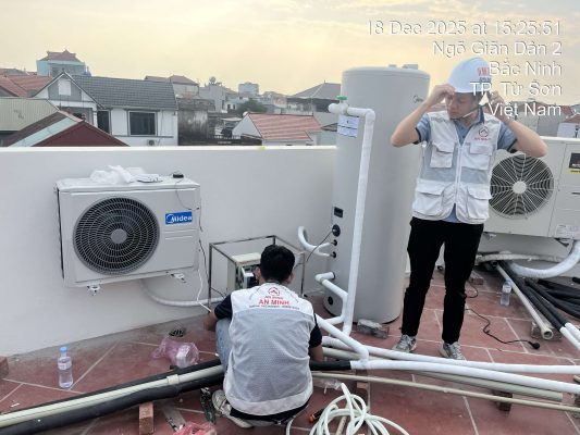 Mới đây, An Minh Solutions đã hoàn thiện dự án lắp đặt máy nước nóng bơm nhiệt Heatpump Split Midea 300L cho một gia đình tại Bắc Ninh, mang đến giải pháp nước nóng trung tâm ổn định và tiết kiệm điện vượt trội.