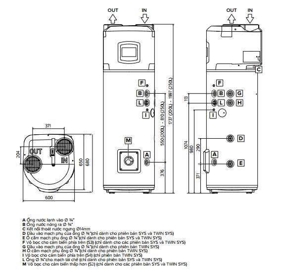 Thông số kỹ thuật máy bơm nhiệt Ariston NUOS PLUS WIFI 250L