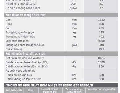 Hiệu suất hoạt động của model 551E280 & 551E280/B