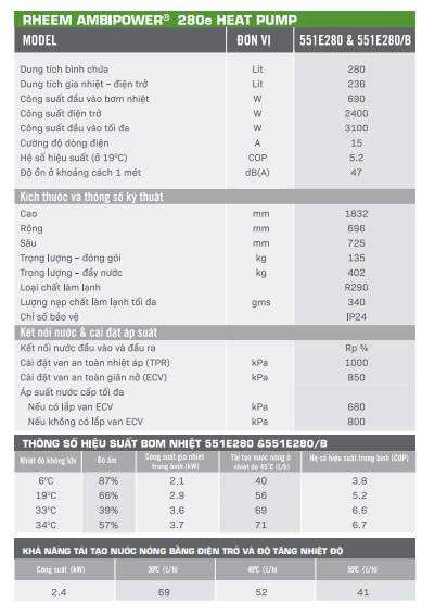 Giá máy nước nóng bơm nhiệt Rheem 280L